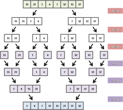 merge_sort.java/* * 두 배열을 합치는 메소드 * data[] 정렬할 배열, p는 시작 index, q는 중간 index, r은 마지막 index */ void merge(int data[], int p, int q, int r){ int i = p, j = q+1, k = p; int tmp[data.length()]; // q을 기준으로 앞 배열과 뒤 배열 중 k 배열로 모두 옮겨질 때까지 반복 while (i <= q && j <= r){ if(data[i] <= data[j]) tmp[k++] = data[i++]; else tmp[k++] = data[j++]; } while (i <= q) tmp[k++] = data[i++]; while (k <= r) tmp[k++] = data[j++]; // 정렬된 데이터를 원래 데이터로 옮겨준다. for(int i = p, i <= r; i++) data[i] = tmp[i]; } /** * 정렬 * data[] 정렬할 배열, p는 시작 index, r은 마지막 index */ void mergeSort(int data[], int p, int r{ int q; if(p < r){ q = (p + r) / 2; mergeSort(data[], p, q); mergeSort(data[], q + 1, r); merge(data[], p, q, r); } }