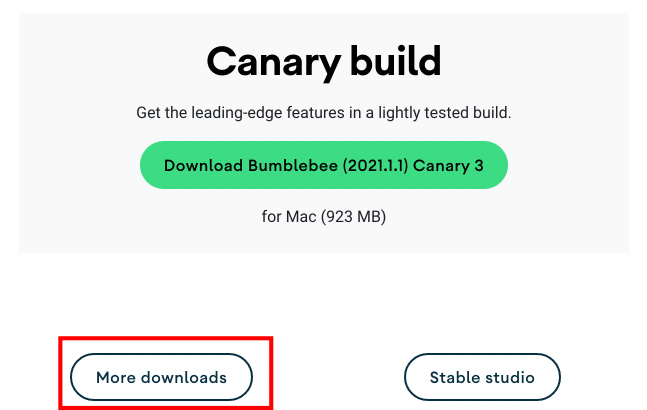 Android Preview 사이트에 접속하여 Canary build의 More downloads 을 클릭합니다.