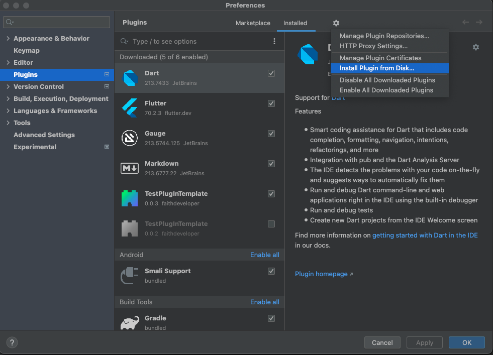 e.g. studioRunPath=/Applications/Android Studio.app/ContentsplatformPlugins에서 사용 할 java, android, kotlin 을 세팅합니다.